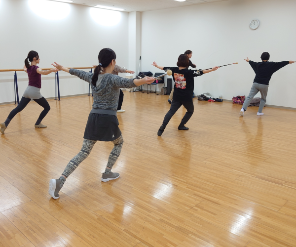 社交ダンスのステップを中心に使用して、ペアではなく1人もしくは参加者全員で体を動かします。