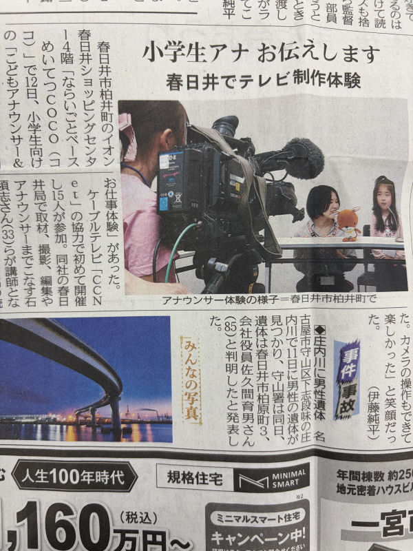 めいてつCOCOで開催いたしました「こどもアナウンサー&お仕事体験」の様子が、中日新聞に掲載されました。